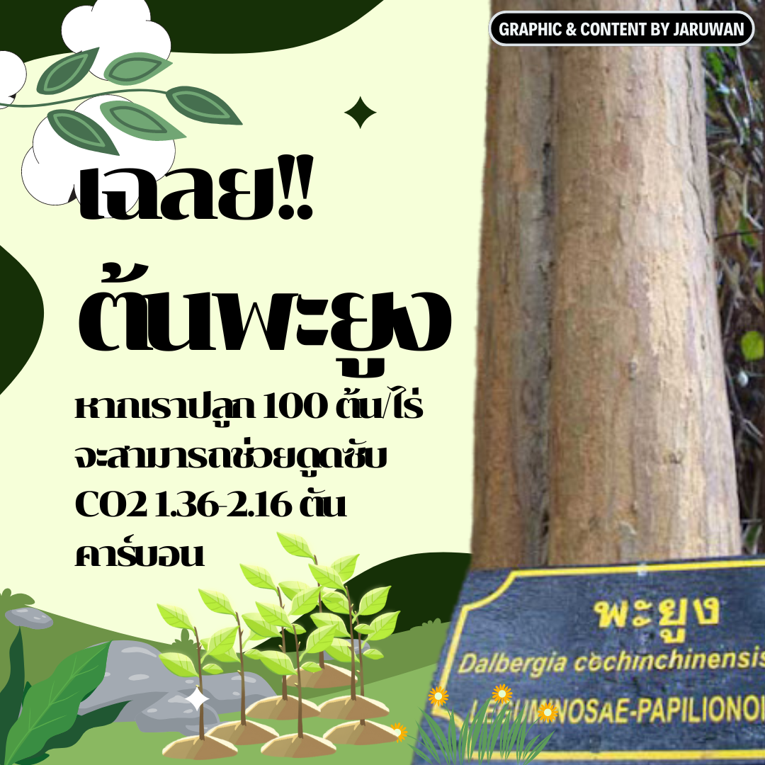 • 100 slow-growing trees/Rai(1,600 sq. meter)  can absorb 0.95 tons of carbon dioxide/year.